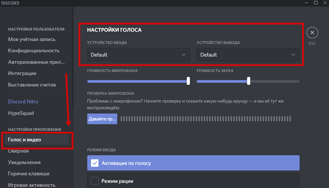 Если не работают наушники в дискорде или вас не слышно, воспроизведите те же самые действия: