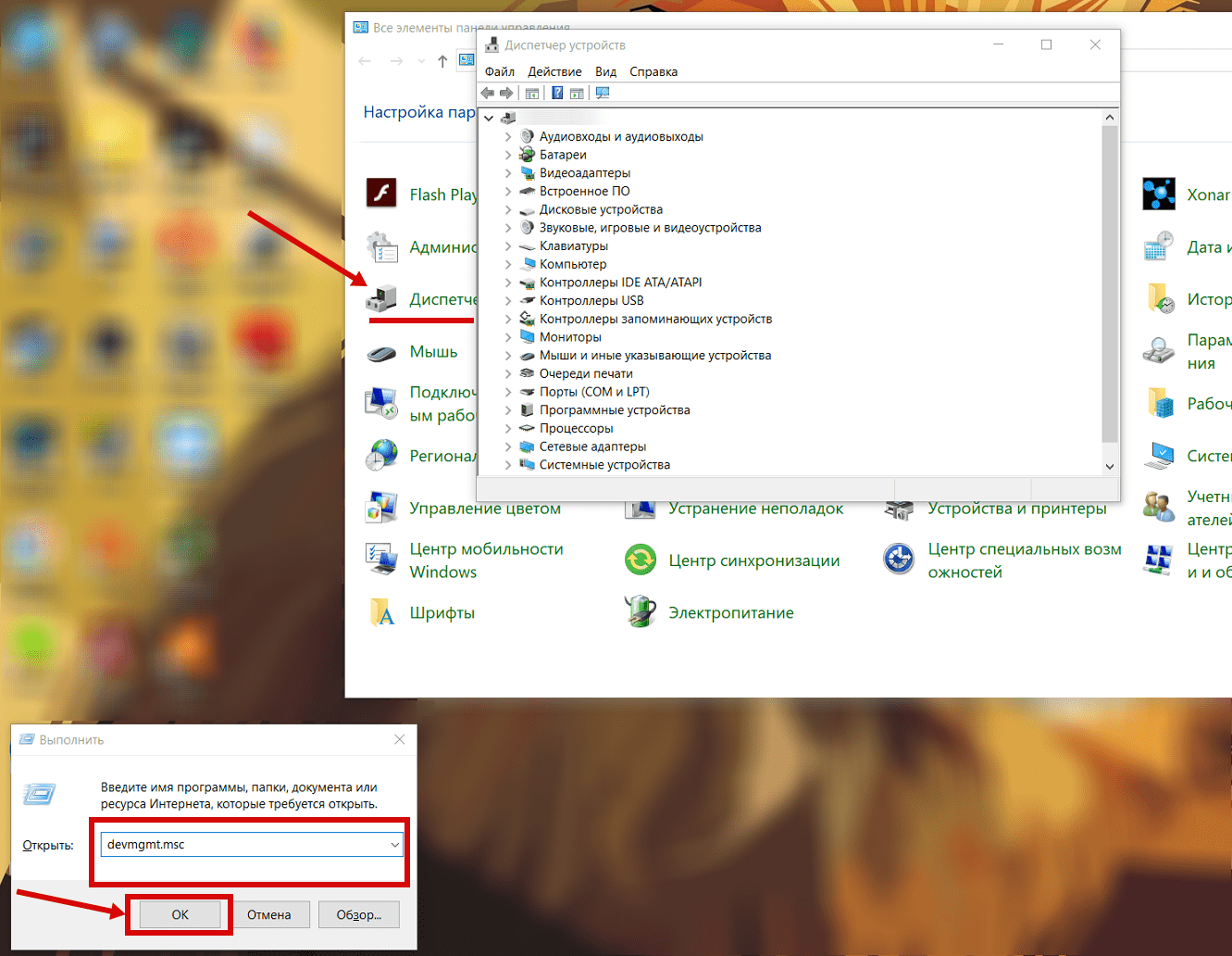 • зажмите Win+R и в открывшееся поле вставьте команду devmgmt.msc нажмите ок.